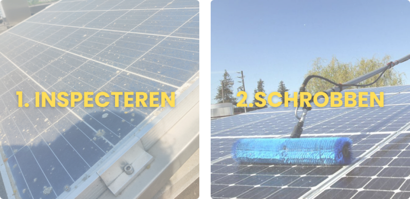 Nazit: Na het verwijderen van het vuil spoelen we de panelen grondig af om achtergebleven residu te voorkomen.